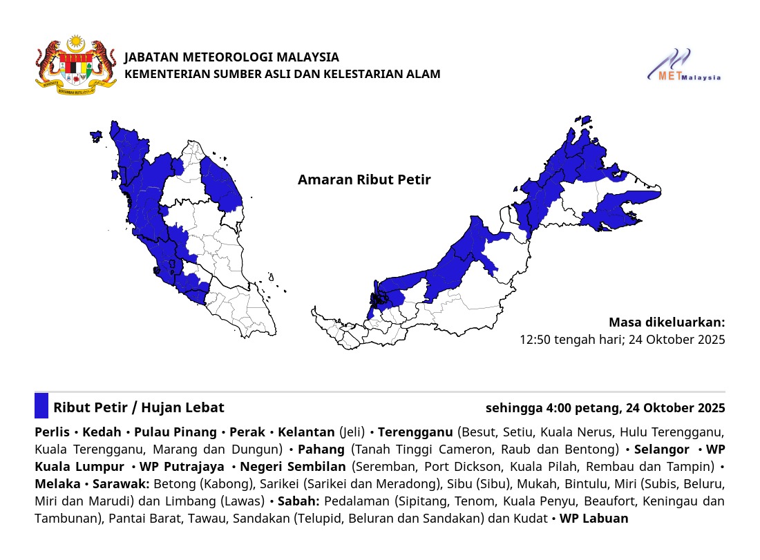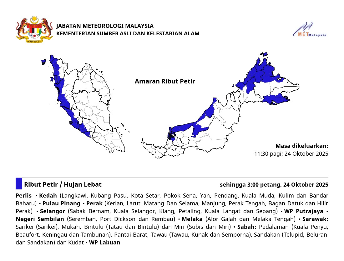 RIBUT PETIR, HUJAN LEBAT DAN ANGIN KENCANG DIJANGKA DI NEGERI PULAU PINANG SEHINGGA 10:00 MALAM_SEMI_COL_ KHAMIS, 25 NOVEMBER 2021.