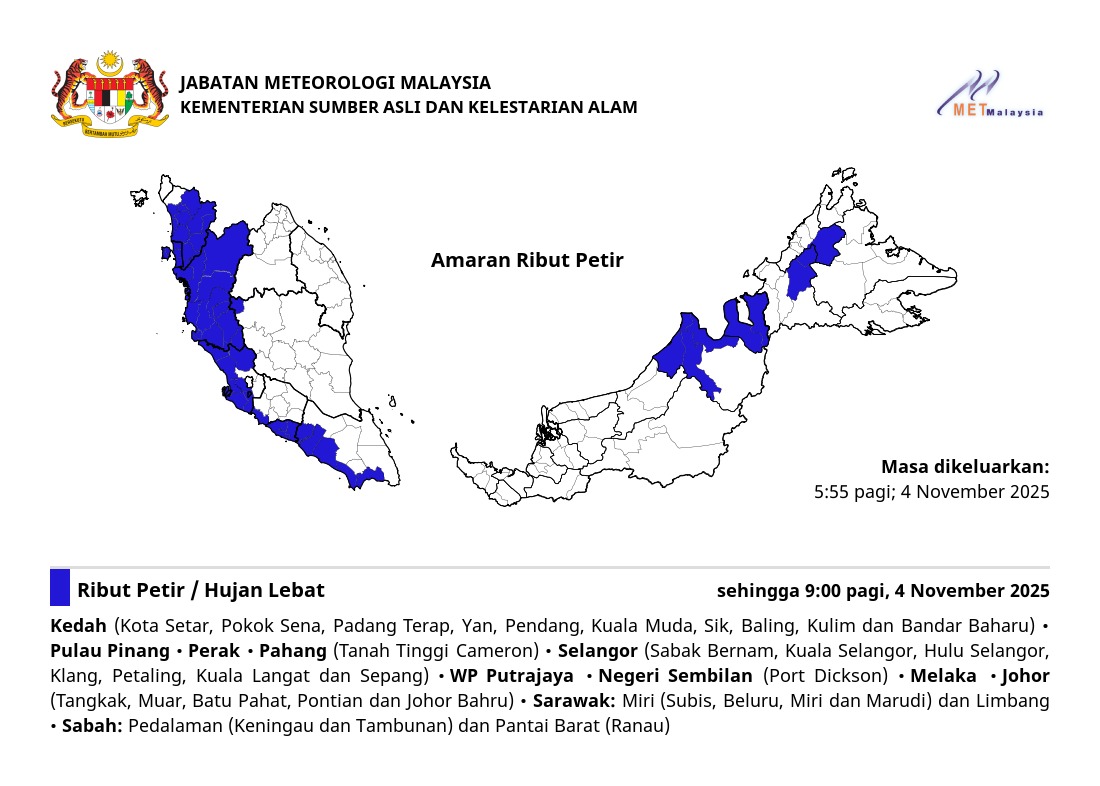 RIBUT PETIR, HUJAN LEBAT DAN ANGIN KENCANG DIJANGKA DI NEGERI PULAU PINANG (SEBERANG PERAI UTARA, SEBERANG PERAI TENGAH DAN SEBERANG PERAI SELATAN) SEHINGGA 1:00 PAGI, JUMAAT, 10 JUN 2022.
