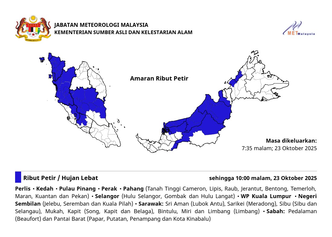RIBUT PETIR, HUJAN LEBAT DAN ANGIN KENCANG DIJANGKA DI NEGERI PULAU PINANG SEHINGGA 5:00 PAGI, JUMAAT, 19 MEI 2023.