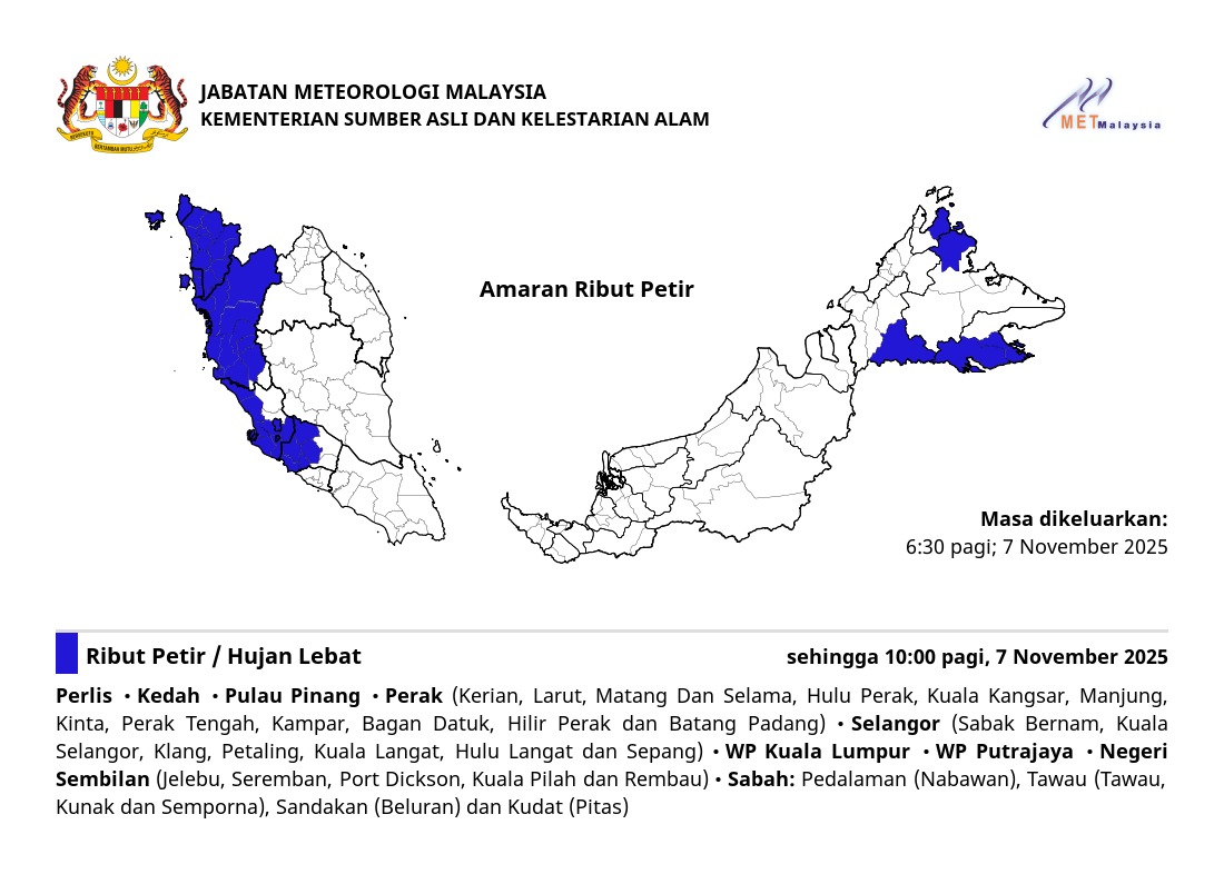RIBUT PETIR, HUJAN LEBAT DAN ANGIN KENCANG DIJANGKA DI NEGERI PULAU PINANG SEHINGGA 11:00 MALAM, RABU, 10 JULAI 2019.