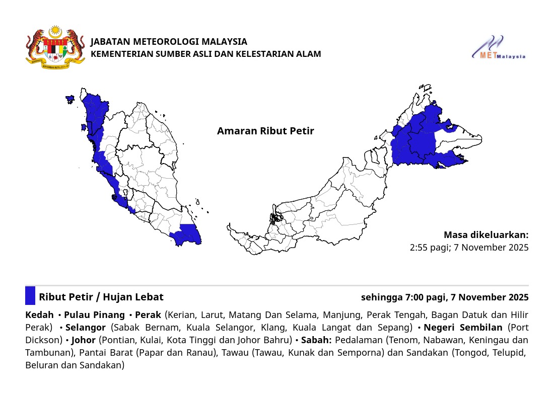 RIBUT PETIR, HUJAN LEBAT DAN ANGIN KENCANG DIJANGKA DI NEGERI PULAU PINANG SEHINGGA 11:00 MALAM KHAMIS, 11 JULAI 2019.